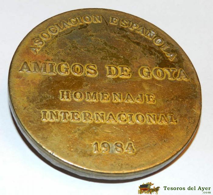MEDALLA RELIEVE A GOYA DE LA ASOCIACION ESPAÑOLA AMIGOS DE GOYA, HOMENAJE INTERNACIONAL 1984 - EN BRONCE. MIDE 7 CMS. DE DIAMETRO.