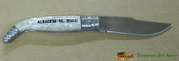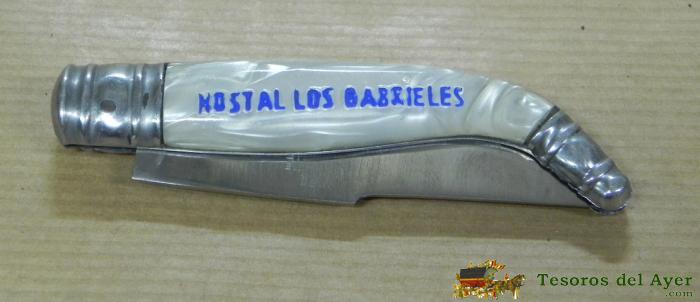 ANTIGUA NAVAJA DE ALBACETE, INOX, CON PUBLICIDAD DE HOSTAL LOS GABRIELES, MIDE ABIERTA 15 CMS.