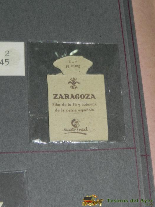 EMBLEMA DE AUXILIO SOCIAL, PRECIO 30 CTS, TAMAÑO 3 X 3,5 CMS, SERIE M, NUMERO 2, 6 JUNIO DE 1945