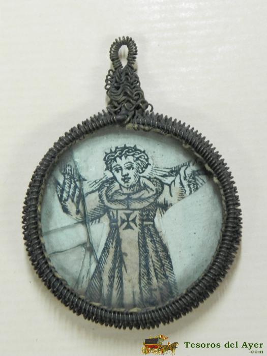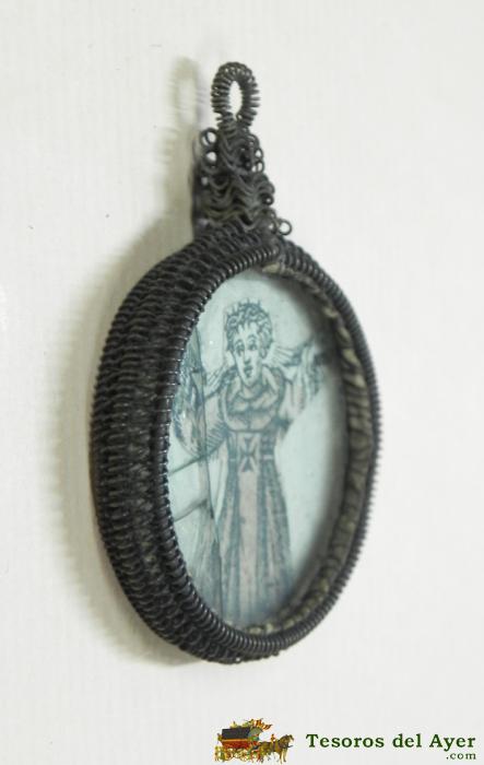 MEDALLON RELICARIO DE LA ALBERCA (SALAMANCA), CAJA OVAL Y DOBLE VIRIL, SON TAMBIEN TIPICOS DE ZAMORA Y LEON, ENMARCADO CON ORLA DE HILO METALICO EN FILIGRANA, NUESTRA SEÑORA DEL CARMEN, SIGLO XVIII MIDE 6 CMS. DE LONGITUD, TOTALMENTE ORIGINAL, VER TODAS LAS FOTOGRAFIAS PUESTAS.