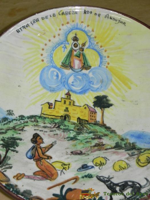 ANTIGUO PLATO DE CERAMICA NUESTRA SEÑORA DE LA CABEZA, RECUERDO DE ANDUJAR, MARCA C.N. 10, MIDE 29,5 CMS. DE DIAMETRO, EXCELENTE ESTADO.