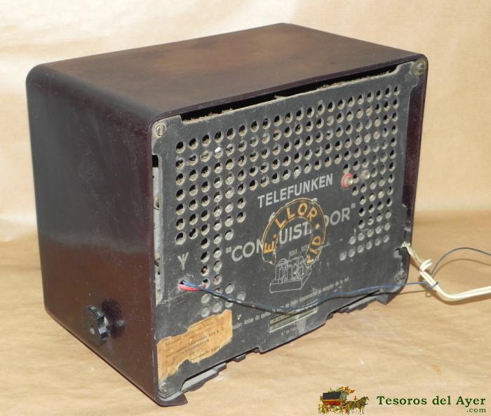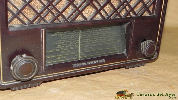 RADIO TELEFUNKEN BAKELITA MODELO CONQUISTADOR TIENE TODOS LOS BOTONES, NO LA HEMOS PROBADO POR LO QUE NO SABEMOS SIN FUNCIONA, MIDE 28,5 X 22 X 16,5 CMS. TAL COMO SE VE EN LAS FOTOS PUESTAS, BUEN ESTADO DE CONSERVACION,