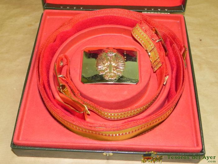 ANTIGUO CINTURON DE GALA, JUNTO CON TIRANTE PARA EL SABLE, HEVILLA, CON SU CAJA ORIGINAL DE EPOCA, TAL COMO SE PUEDE VER EN LAS FOTOS, EXCELENTE ESTADO.
