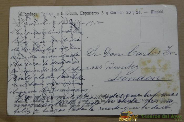 ANTIGUA POSTAL DE CIRCO CON PUBLICIDAD POR EL REVERSO DE TIENDA DE ALFOMBRAS, TAPICES Y LINOLEUM, CALLE ESPARTEROS 3 Y CARMEN 20 Y 24, MADRID, ESCRITA, PERO NO CIRCULADA.