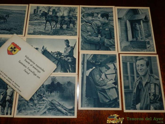 CARTERA DE CARTONCILLO VOLUNTARIOS ESPAñOLES FRENTE AL ENEMIGO (SPANIENS FREIWILLIGE AM FEIND), SERIE I, BILINGüE ESPAñOL-ALEMáN, ESTAMPAS DE LA DIVISIóN ESPAñOLA DE VOLUNTARIOS, CONTENIENDO 12 POSTALES. 12 FOTOS DE UNA COMPAÑIA DE PROPAGANDA ALEMANA, 238