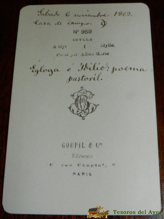 ANTIGUA FOTOGRAFIA ALBUMINA CDV DE PINTURA IDYLLE PINTADO POR ADIEU MARIE, FOTO DE GOUPIL & CIE TOMADA EN NOVIEMBRE DE 1869, MIDE 10,4 X 6,6 CMS.