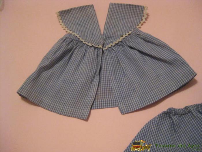 VESTIDO DE VERANO EN VICHY DE LA MUñECA CAYETANA DE 1946, A JUEGO CON FALDA PANTALóN SE ENCUENTRA EN BUEN ESTADO. ESTE CONJUNTO LE QUEDA MUY GRACIOSO.