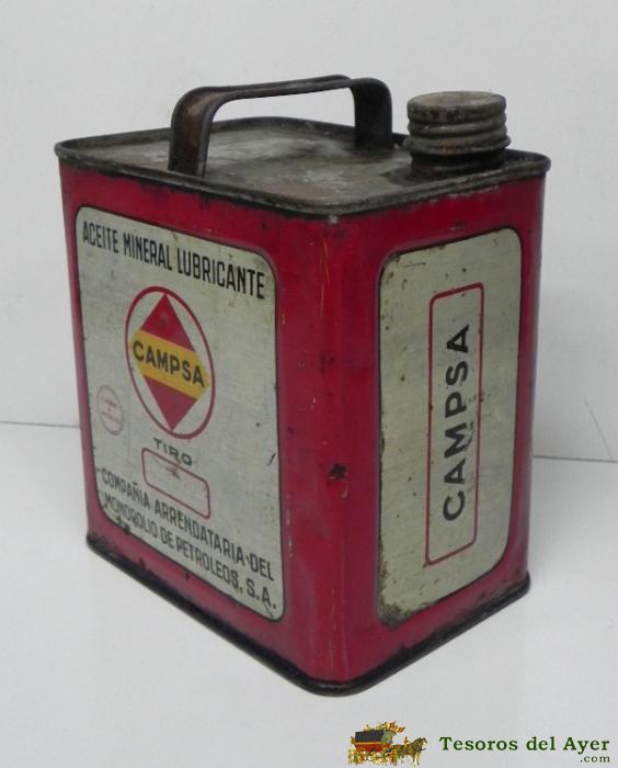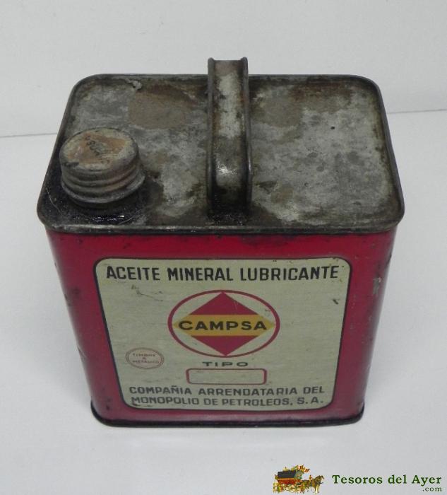 ANTIGUA LATA DE CHAPA LITOGRAFIADA DE CAMPSA - ACEITE MINERAL LUBRICANTE, COMPAÑIA ARRENDATARIA DEL MONOPOLIO DE PETROLEOS S.A. MIDE 17,5 X 15 X 10,5 CMS.