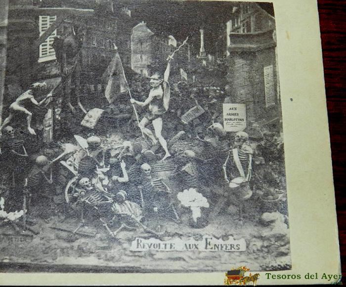 ANTIGUA FOTO ESTEREOSCOPICA DIABLERIES. ESTEREOSCOPIA DE DIABLERIES - REVOLTE AUX ENFERS, AUX ARMES DIABLOTINS, DIABLOS Y ESQUELETOS - MIDE 17 X 8,5 CMS. - INFIERNO, DIABLOS, SATAN - SIGLO XIX