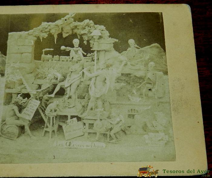 ANTIGUA FOTO ESTEREOSCOPICA DIABLERIES, LES OEUVRES DU DIABLE, CUISINE DU DIABLE. ESTEREOSCOPIA DE DIABLERIES - REVOLTE AUX ENFERS, AUX ARMES DIABLOTINS, DIABLOS Y ESQUELETOS - MIDE 17 X 8,5 CMS. - INFIERNO, DIABLOS, SATAN - SIGLO XIX
