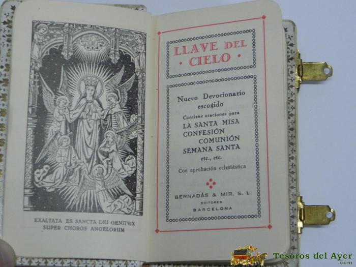 MISAL DE PRIMERA COMUNIÓN - LLAVE DEL CIELO - BERNARDÁS Y MIR 1927, BONITO MISAL DE PRIMERA COMUNIóN, CORTE DE ORO. CIERRES BIEN, MIDE 12 X 7,5 CMS., CON SU CAJA.