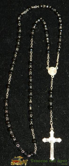 ANTIGUO ROSARIO DE AZABACHE Y PLATA, EXCEPCIONAL, DEL SIGLO XIX, MIDE 38,5 CMS. DE LONGITUD INCLUIDO EL CRUCIFIJO. PRECIOSO .