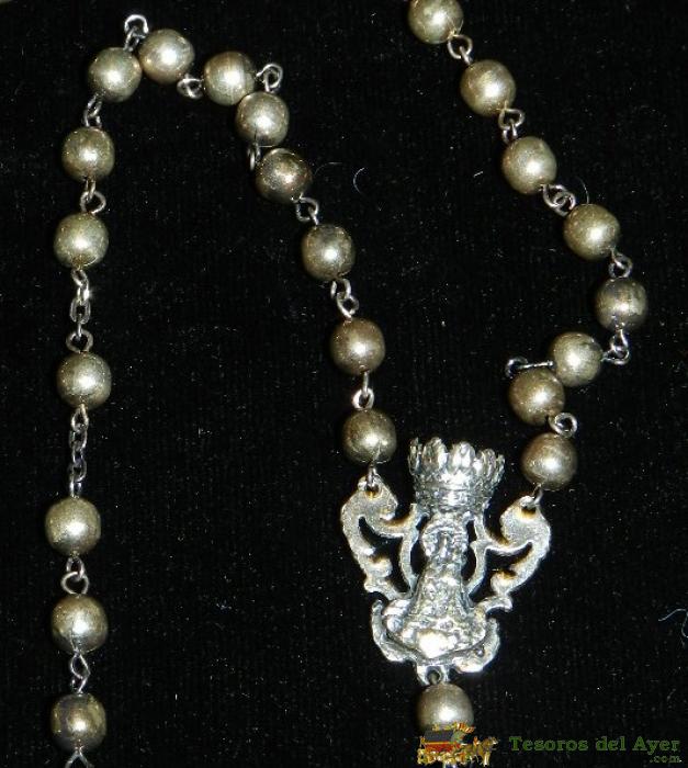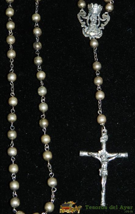 ANTIGUO ROSARIO DE PLATA, SIGLO XIX, MIDE 38,5 CMS DE LONGITUD INCLUIDO EL CRUCIFIJO, PRECIOSO.