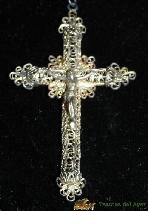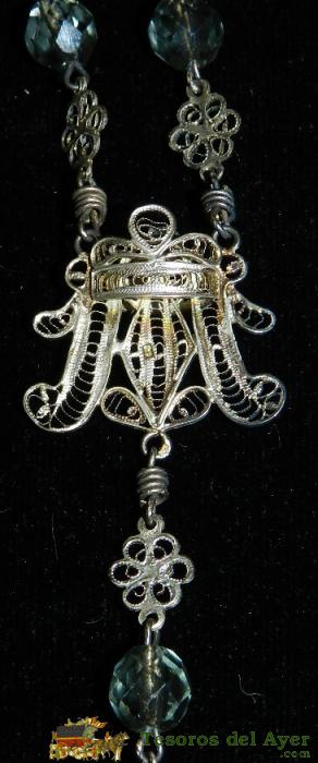 ANTIGUO ROSARIO DE PLATA Y CRISTAL DE ROCA, MIDE 60 CMS. DE LONGITUD INCLUIDO EL CRUCIFIJO, SIGLO XIX. EXCELENTE ESTADO.