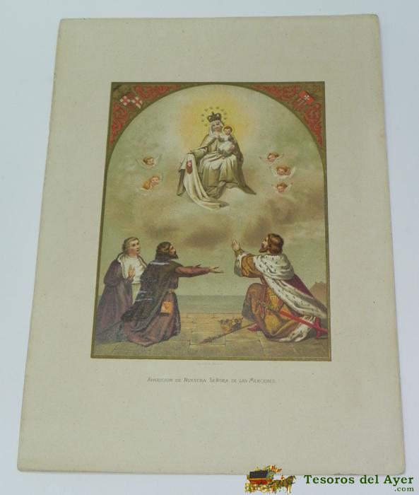 ANTIGUA LITOGRAFIA DELA APARICION DE NUESTRA SEÑORA DE LAS MERCEDES, LITOGRAFIA LABIELLE, R. ROCABERT, PRECIOSA MIDE 38,5 X 27,5 CMS.