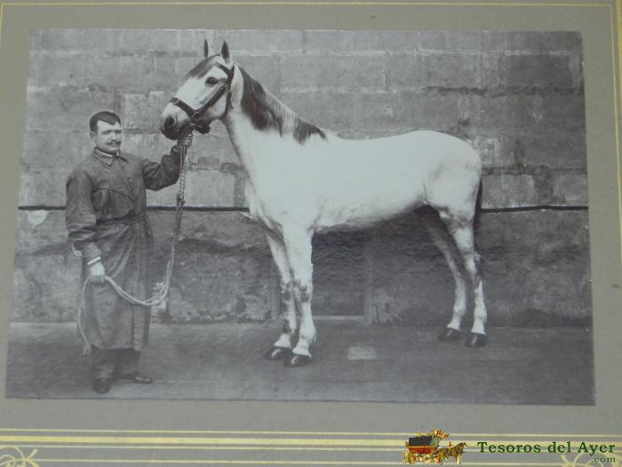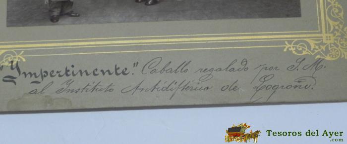 ANTIGUA FOTOGRAFIA ALBUMINA DE LOGROÑO (LA RIOJA), IMPERTINENETE, CABALLO REGALADO POR S. M. AL INSTITUTO ANTIDIFTERICO DE LOGROÑO, FIALES DEL SIGLO XIX, MIDE 24 X 19,7 CMS.