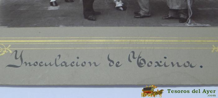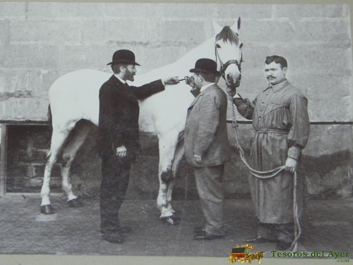 ANTIGUA FOTOGRAFIA ALBUMINA DE LOGROÑO (LA RIOJA), IMPERTINENETE, CABALLO REGALADO POR S. M. AL INSTITUTO ANTIDIFTERICO DE LOGROÑO, INOCULACION DE TOXINA, FINALES DEL SIGLO XIX, MIDE 24 X 19,7 CMS.