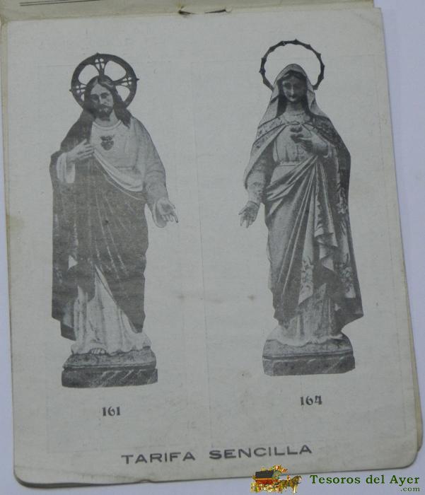 ANTIGUO CATALOGO DE LA PRIMERA CASA EN ORNAMENTOS SAGRADOS, SOBRINOS DE EMETERIO MIGUEL, VALLADOLID, 4 PAG, CON FOTOGRAFIAS DE IMAGENES MAS LISTA DE PRECIOS EN LAS PORTADAS POR EL INTERIOR, MIDE 15 X 12 CMS.