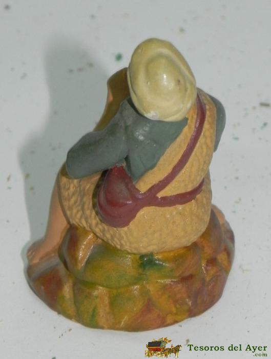 ANTIGUA FIGURA DE BELEN DE BARRO, TIPO ROSES, ORTIGAS O CASTELLS, MIDE 6,5 CMS. DE ALTURA, ATENERSE A LAS FOTOGRAFIAS PUESTAS.