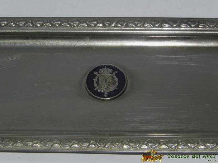 ANTIGUA BANDEJITA METALICA CON DISTINTIVO DE LA CASA REAL, MIDE 21 X 8,5 CMS. BUEN ESTADO.