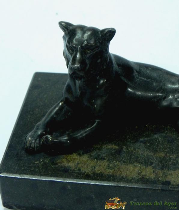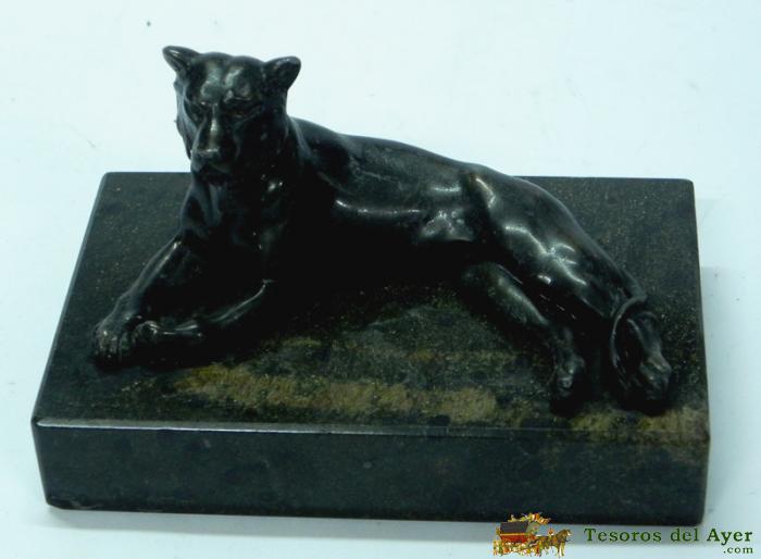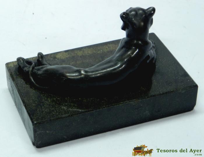ANTIGUA FIGURA DE UN PERRO METALICO AL PARECER DE BRONCE TUMBADO SOBRE BASE DE MARMOL. SE PUEDE UTILIZAR COMO PISAPAPELES. MIDE LA BASE 13 X 8 CM.