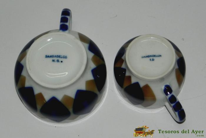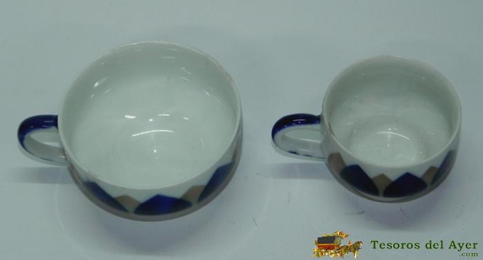 ANTIGUAS TAZAS DE CAFE, FABRICADA POR SARGADELOS, TIENE LIGEROS DESPERFECTOS EN EL FILO. LA GRANDE MIDE 8,4 CMS DE DIAMETRO Y LA PEQUEÑA 6 CMS.