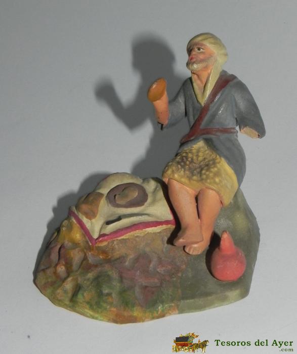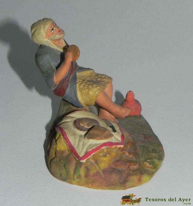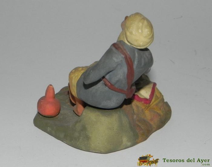 ANTIGUA FIGURA DE BELEN DE BARRO, TIPO ROSES, ORTIGAS O CASTELLS, MIDE 6,8 CMS. DE LARGO X 6,5 DE ALTO, COMO SE PUEDE VER EN LAS FOTOGRAFIAS PUESTAS LE FALTA UN BRAZO, ATENERSE A LAS FOTOGRAFIAS PUESTAS.