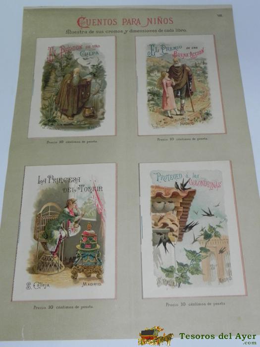 ANTIGUO CARTEL CON PUBLICIDAD DE LOS CUENTOS DE CALLEJA, CUENTOS PARA NIÑOS - COMPLEAMENTE ANTIGUO Y ORIGINAL - MUESTRA DE SUS CROMOS Y DIMENSIONES DE CADA LIBRO, POR LA PARTE TRASERA VA TAMBIEN IMPRESO, SEGURAMENTE SE PONIAN EN LAS ANTIGUAS LIBRERIAS. MI