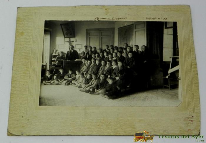ANTIGUA FOTOGRAFIA DE UNA CLASE DE NIÑOS CON SU PROFESOR EN 1924, MIDE 22 X 17,5 CMS. INCLUIDO EL PASPARTOUT.