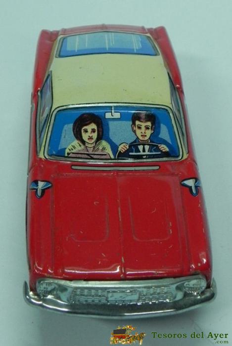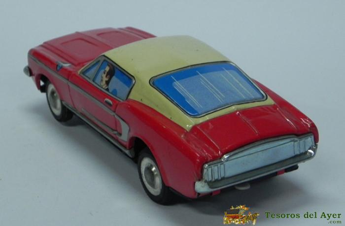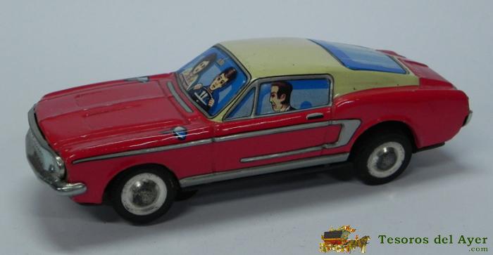 ANTIGUO COCHE FORD MUSTANG DE HOJALATA LITOGRAFIADA, AÑOS 60, MADE IN JAPAN, MARCA DSK, MIDE 18 CMS. A BATERIA. CAJA 1