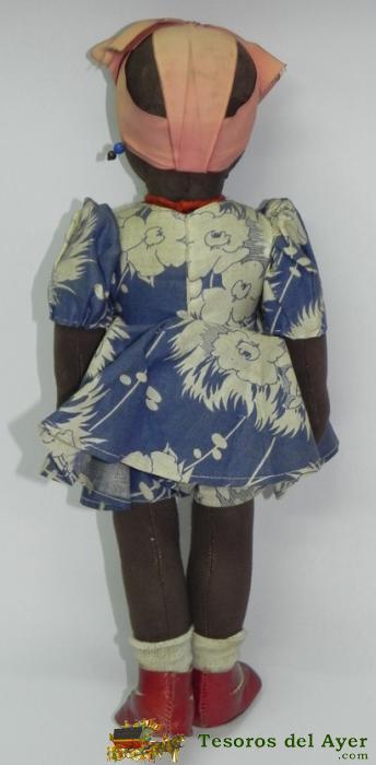 ANTIGUO MUÑECA NEGRITA DE TELA, AÑOS 30, MIDE 34 CMS. ZAPATOS DE PIEL, TAL COMO SE VE EN LAS FOTOGRAFIAS PUESTAS. ESPAÑOL. TIPO PAGES, LENCY.