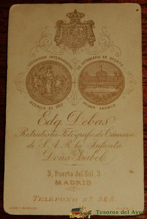ANTIGUA FOTOGRAFIA ALBUMINA TIPO CDV, FOTO EDG. DEBAS, MADRID, MIDE 10,2 X 6,2 CMS.