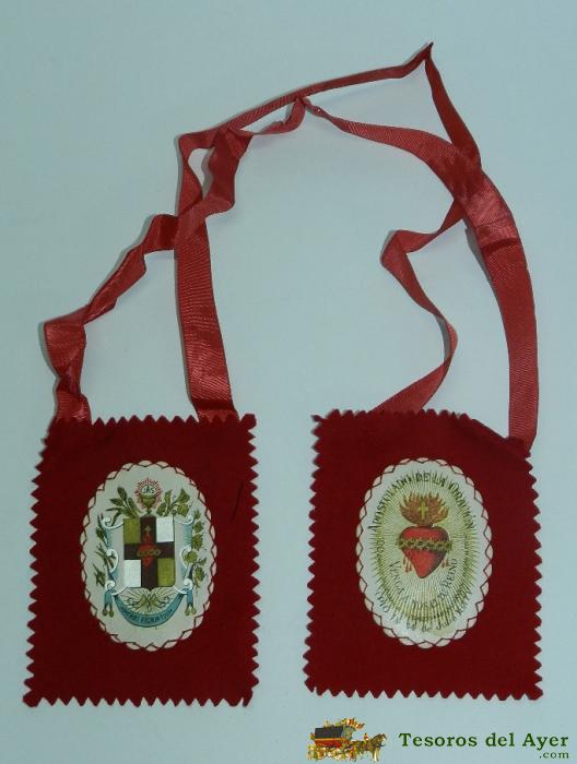 ANTIGUO ESCAPULARIO, APOSTOLADO DE LA ORACION, PIO IX, VENGA A NOS EL TU REINO, 14 DE JULIO DE 1877, MIDE 10,5 X 8,5 CMS. EN TELA.