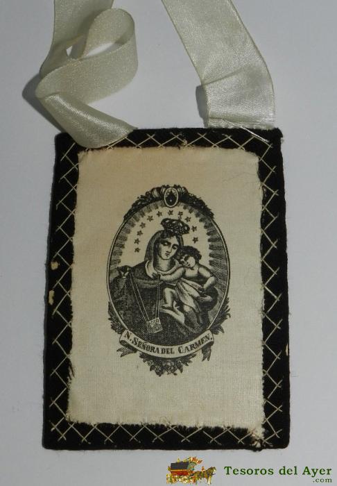 ANTIGUO ESCAPULARIO, DE NUESTRA SEPÑORA DEL CARMEN, MIDE CADA CUADRADO 11,5 X 8 CMS. EN TELA.