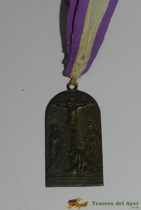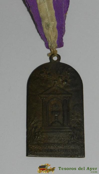 ANTIGUO ESCAPULARIO, MEDALLA SAGRADOS CALVARIOS - OBRA DE LAS TRES MARIAS DE LOS DISCIPULOS DE SAN JUAN, MIDE APROXIMADAMENTE 6 X 3 CTMOS.
