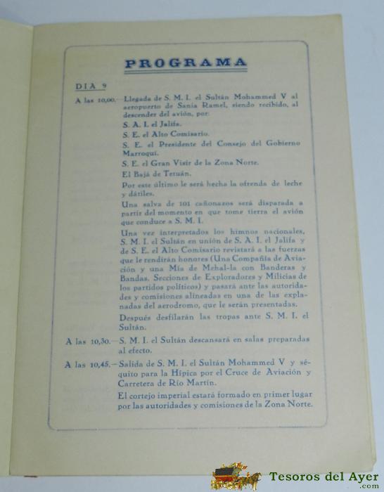 ANTIGUO PROGRAMA DE LOS ACTOS EN TETUAN EL 9 DE ABRIL DE 1956, CON MOTIVO DE LA VISITA DEL SULTAN MOHAMMED V, IMPERIO DE MARRUECOS, IMP. DEL MAJZEN, 8 PAG + PLANO DESPLEGABLE, ESCRITO EN CASTELLANO Y ARABE, MIDE 23 X 16 CMS.