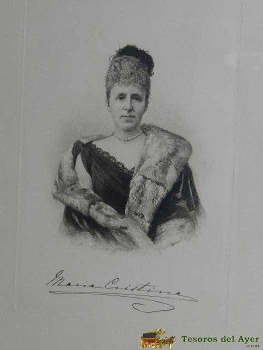 GRABADO DE REINA MARIA CRISTINA Y FIRMADO POR ELLA. DE BARTOLOMé MAURA (HERMANO DE POLITICO), GRABADO ORIGINAL DE REINA MARIA CRISTINA, HECHO POR BARTOLOMé MAURA (HERMANO DEL FAMOSO POLITICO ESPAñOL ANTONIO MAURA). ORIGINAL DE S.XIX. ES DE GRAN TAMAñO, MI