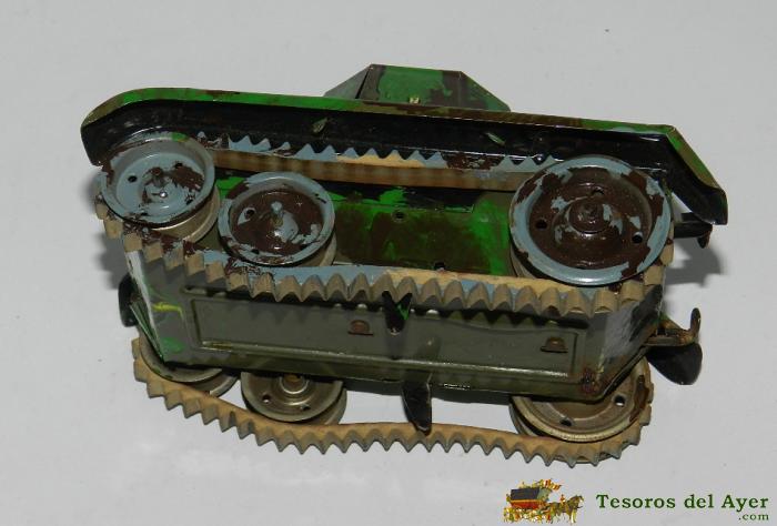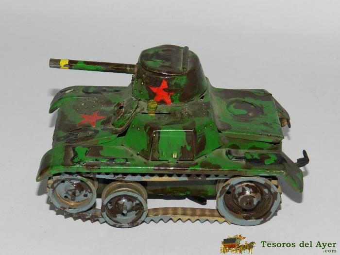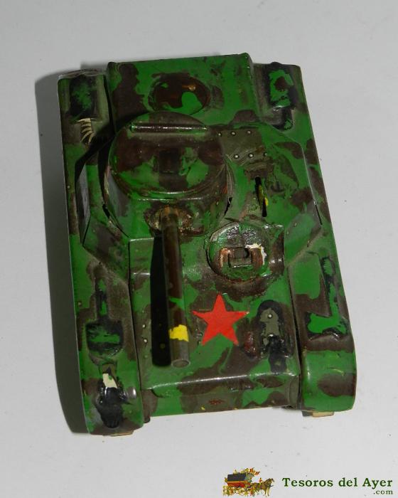 ANTIGUO TANQUE DE GAMA A CUERDA, HA SIDO REPINTADO A MODO DEL EJERCITO RUSO EN LA II GUERRA MUNDIAL, MIDE 13,5 CMS. DE LONGITUD, LA CUERDA FUNCIONA, TIENE LAS GOMAS EN BUEN ESTADO, PERO ESTAN ALGO DURAS POR EL PASO DEL TIEMPO Y RESBALAN. TAL COMO SE VE EN LAS FOTOGRAFIAS PUESTAS. CAJA 2