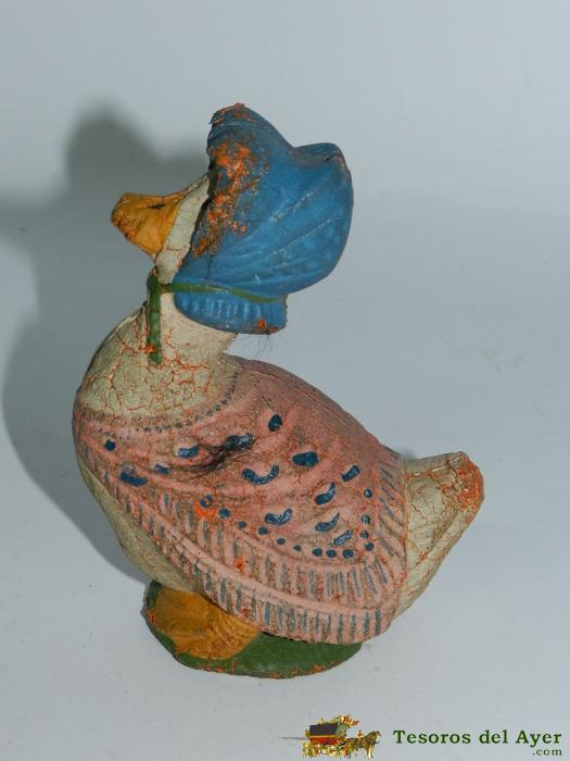 ANTIGUA FIGURA DE JEMIMA PUDDLE-DUCK DE GOMA, MADE IN AUSTRIA, MIDE 10,5 CMS. DE ALTURA, AñOS 30.