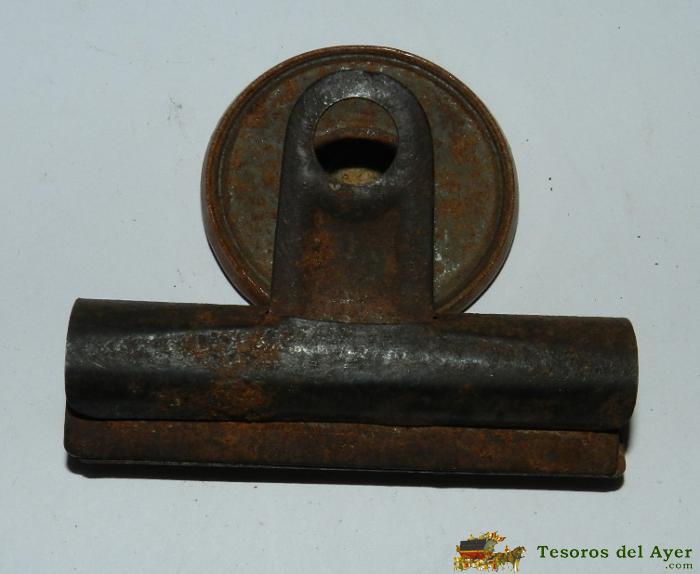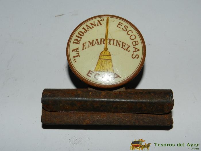 ANTIGUA PINZA DE HOJALATA LITOGRAFIADA CON PUBLICIDAD DE LA RIOJANA, ESCOBAS, F. MARTINEZ DE ECIJA (SEVILLA), MIDE 6,5 X 6 CMS. BUEN ESTADO DE CONSERVACION. MUY RARA.