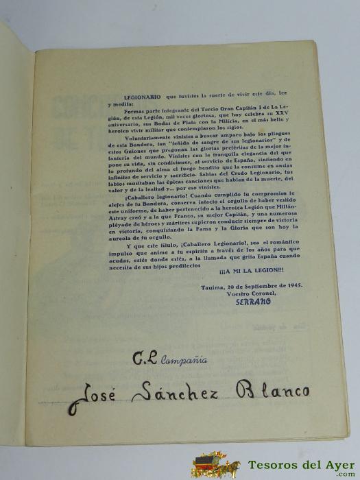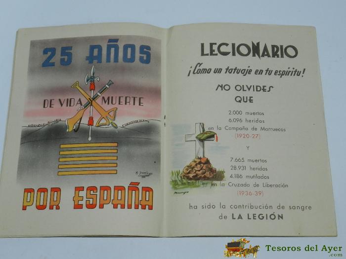 ANTIGUO PROGRAMA DE FESTEJO DE LA LEGION, BODAS DE PLATA DE LA LEGION, TERCIO GRAN CAPITAN, 1º DE LA LEGION, XXV ANIVERSARIO, 1945, TIENE 32 PAGINAS INCLUYENDO LAS TAPAS, MIDE 22 X 16 CMS. EXCELENTE ESTADO DE CONSERVACION,