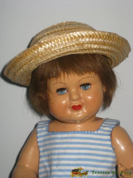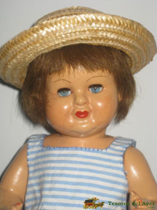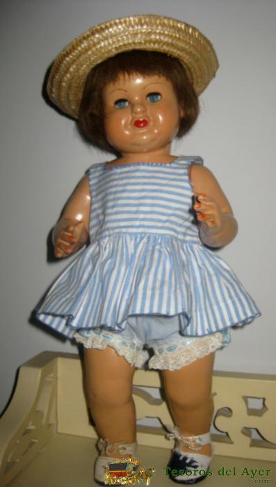 INTERESANTE MUÑECA ANTIGUA POSIBLEMENTE DE LA CASA FLORIDO, FINALES DE LOS 40- DESCONOZCO SU NOMBRE- CABELLO NATURAL, OJO DURMIENTE ACRÍLICO,BOQUITA CERRADA- VESTIDO POSIBLEMENTE ORIGINAL.