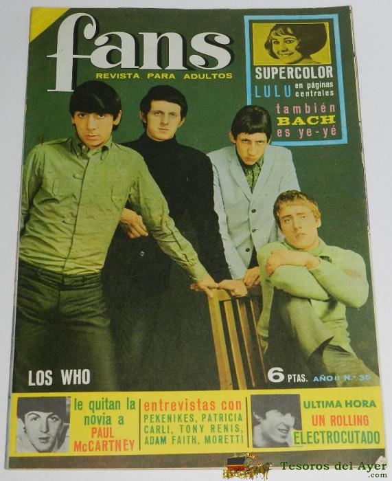 REVISTA MUSICAL FANS Nº 35 THE WHO POSTER LULU, ROLLING STONES ROY ORBISON, THE TOYS, BEATLES, MUSTANG, 30 PAG.
