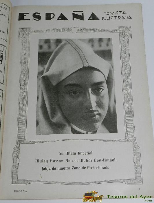 REVISTA ESPAÑA, NUMERO EXTRAORDINARIO DEDICADO A AFRICA, NUM. 18 DE 15 DE FEBRERO 1930, LUIS RUIZ CONTGRATISTA DE OBRASN PUBLICAS EN TETUAN (MARRUECOS), CASA DE CORREOS Y TELGRAFOS DE ARCILA, SU ALTEZA IMPERIAL MULEY HASSAN BEL EL MEHDI BEN ISMAEL, JALIFA