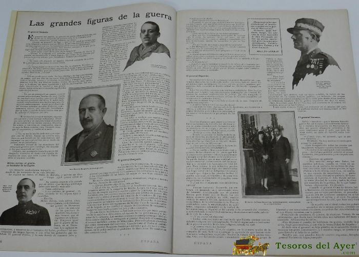REVISTA ESPAÑA, NUMERO EXTRAORDINARIO DEDICADO A AFRICA, NUM. 18 DE 15 DE FEBRERO 1930, LUIS RUIZ CONTGRATISTA DE OBRASN PUBLICAS EN TETUAN (MARRUECOS), CASA DE CORREOS Y TELGRAFOS DE ARCILA, SU ALTEZA IMPERIAL MULEY HASSAN BEL EL MEHDI BEN ISMAEL, JALIFA DE NUESTRA ZONA DE PROTECTORADO, , FRANCISCO GOMEZ JORDANA, ALTO COMISARIO DE ESPAÑA EN MARRUECOS, LA GRANDES FIGURAS DE LA GUERRA, MILLAN ASTRAY EL GLORIOSO FUNDADOR DE LA LEGION, GENERAL BURGUETE, GENERAL RIQUELME, GENERAL NAVARRO, TENIENTE GENERAL BARON DE CASA DAVAILLOS, ALHUCEMAS, VILLA SANJURJO, LA GRANJA DE LA LEGION, LA PRENSA ARABE, LA REDACCION DE EL ISLAH Y AL ITTIHAD, DE TENIENTE DE REGULARES A NOVILLERO, LA LABOR DE LA DELGACION DE FOMENTO EN MARRUECOS ESPAÑOL, TIENE 68 PAGINAS Y MIDE 34 X 24 CMS. MUY ILUSTRADA CON FOTOGRAFIAS.