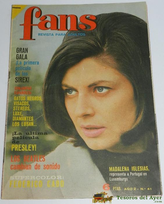 REVISTA FANS Nº 41, EUROVISION, MADALENA IGLESIAS, BEATLES, ELVIS PRESLEY - CON CARTEL DE FEDERICO CABO, TIENE UN RECORTE EN LA PAGINA 3. 30 PAG.