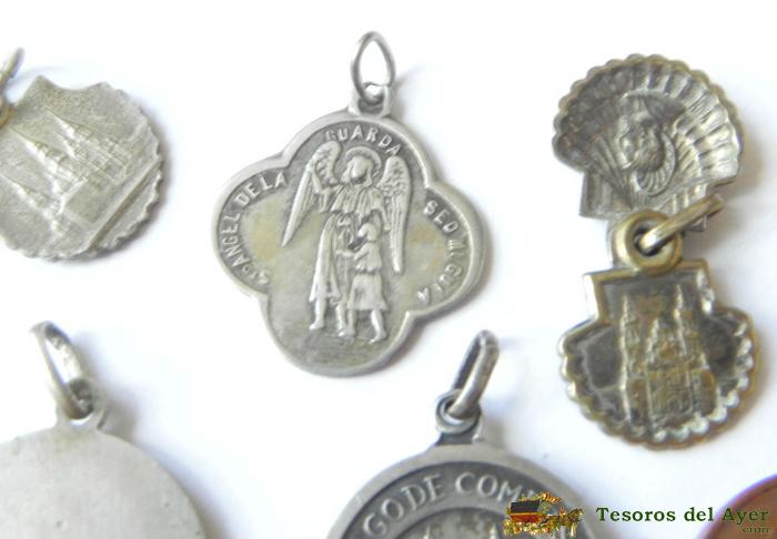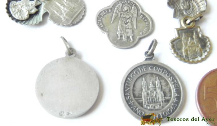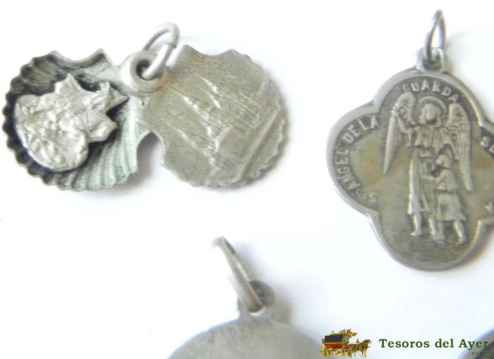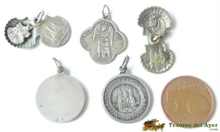 ANTIGUO LOTE DE 5 MEDALLAS RELIGIOSAS DE LAS QUE 3 SON DE PLATA, TAL COMO SE VE EN LA FOTOGRAFIA PUESTA.