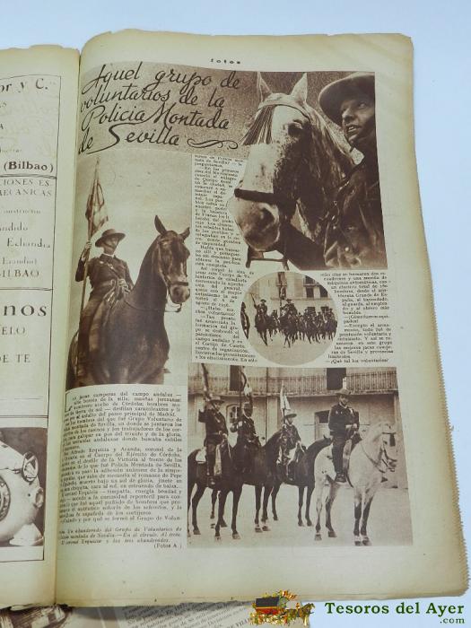 ANIGUA REVISTA FOTOS - VOLUNTARIOS POLICIA MONTADA SEVILLA - 3 JUNIO 1939 - GUERRA CIVIL - Nº 118 - CABALLERIA, EL ADIOS A LA LEGIóN CONDOR, MIDE 38 X 26 CMS, 30 PAG.