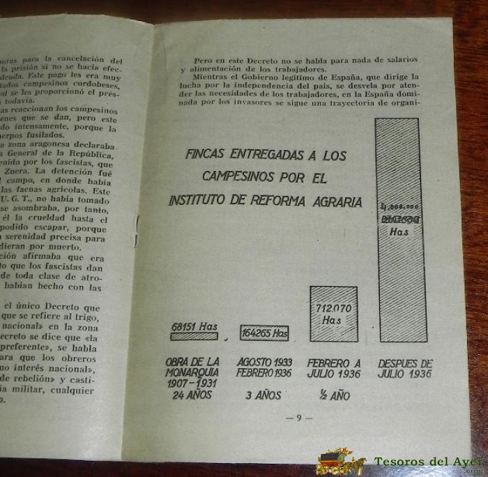 FOLLETO GUERRA CIVIL. CHARLAS POPULARES, LO QUE SIGNIFICA LA GUERRA, MINISTERIO DE AGRICULTURA, PARA QUE EL CAMPESINO TENGA TIERRAS, TRABAJO LIBERTAD Y BIENESTAR, 14 PAG. 17 X 12 CM. EDICIONES ESPAÑOLAS, EXCELENTE ESTADO DE CONSERVACION. LAS PAGINAS ESTAN