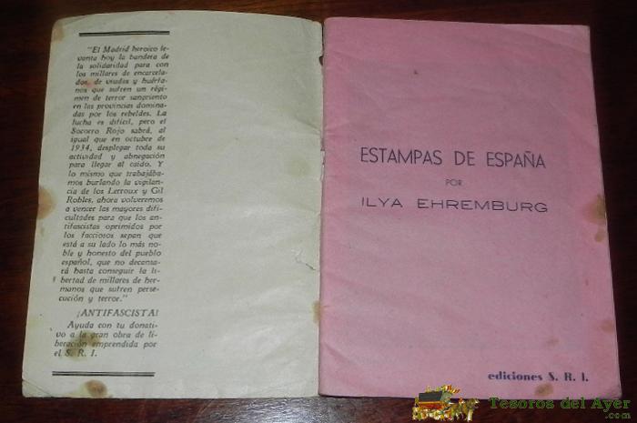 FOLLETO LIBRO GUERRA CIVIL, ESTAMPAS DE ESPAÑA, ILYA EREMBURG . EDICIONES SOCORRO ROJO INTERNACIONAL (S.R.I.) CON EXCELENTE ILUSTRACIONES VANGUARDISTAS DE YES, MJULTITUD DE ELLAS EN CASI TODAS LAS PAGINAS HAY UNA, TIENE 55 PAGINAS, MIDE 17 X 12 CMS. MUY R